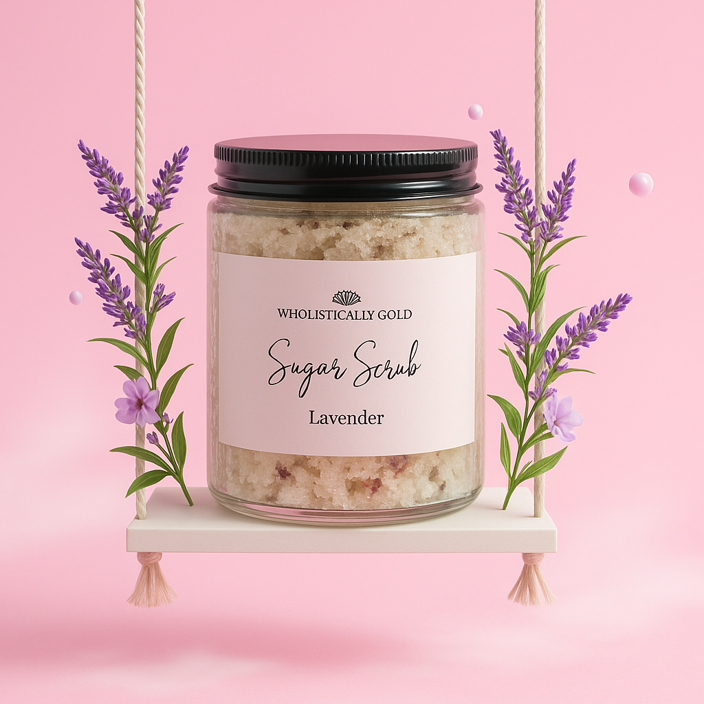 Ingredients: Raw sugar, dried lavender flowers, grapeseed oil, vitamin e oil, jojoba oil, rose hip oil, essential oil and fragrances